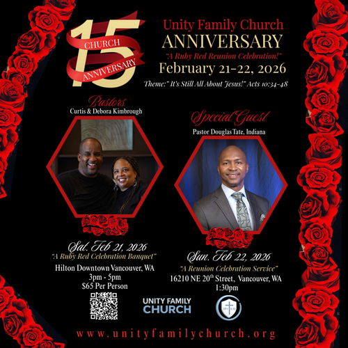 Join us for the 15th Anniversary : A Ruby Red Reunion Celebration, February 21-22, 2026. We’re marking a decade and a half of worship, community, transformation and legacy and we want YOU in the room.